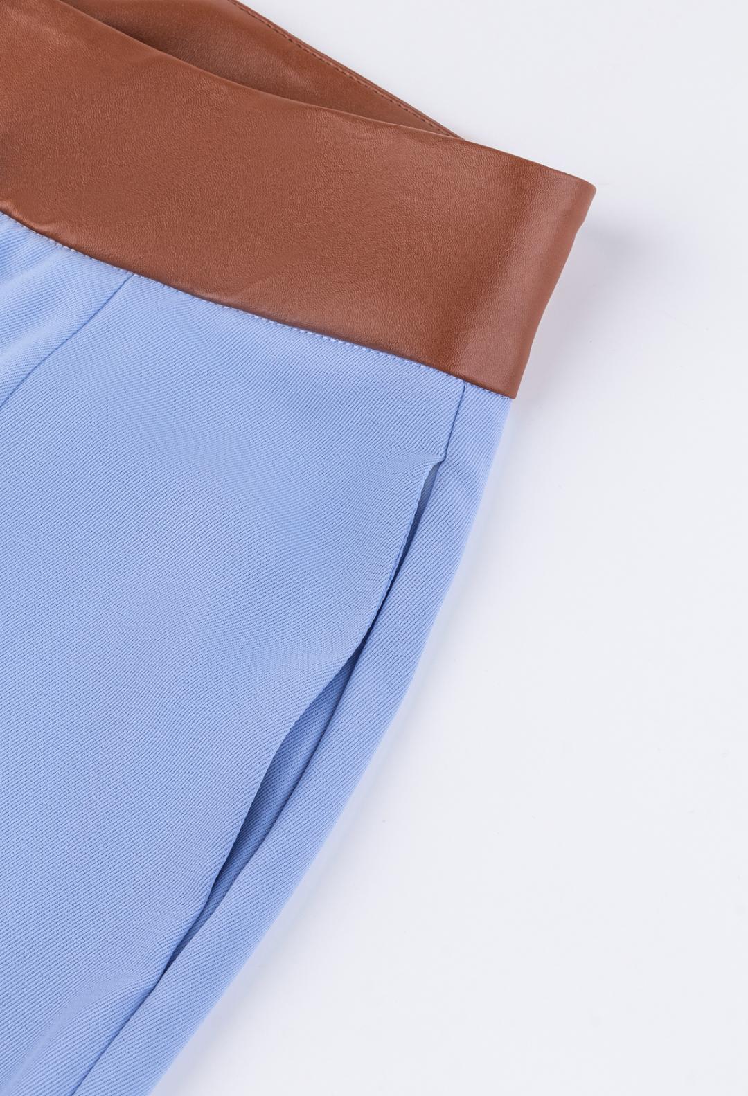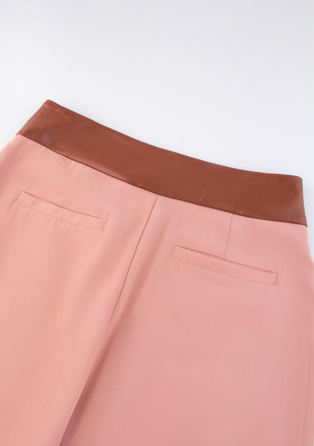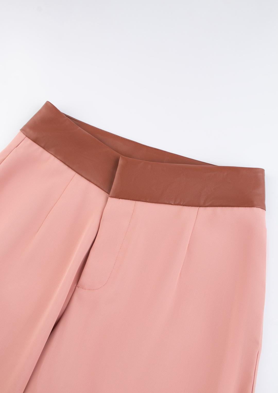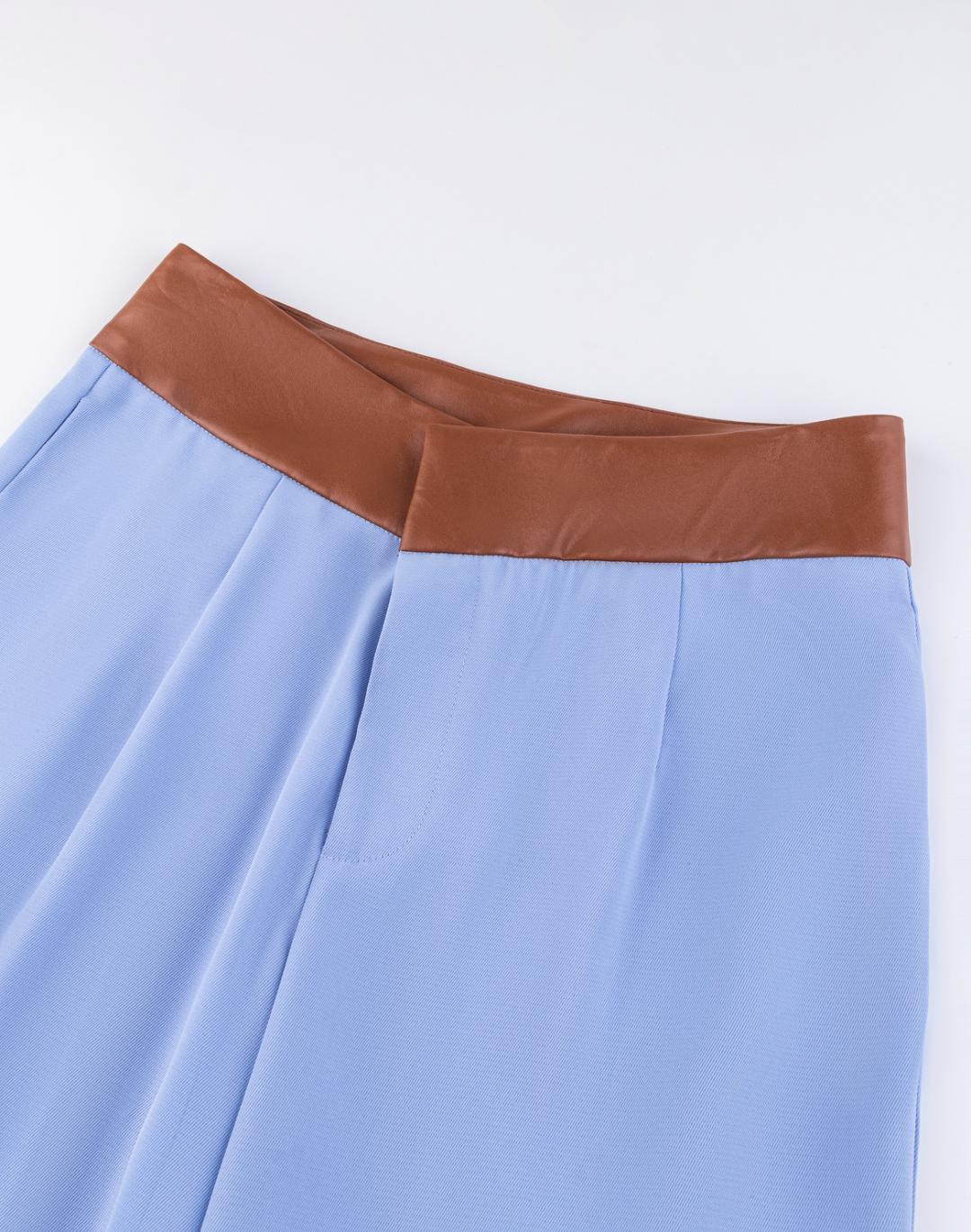 Wide-leg patchwork pants with leather belt. Light fluid fabric