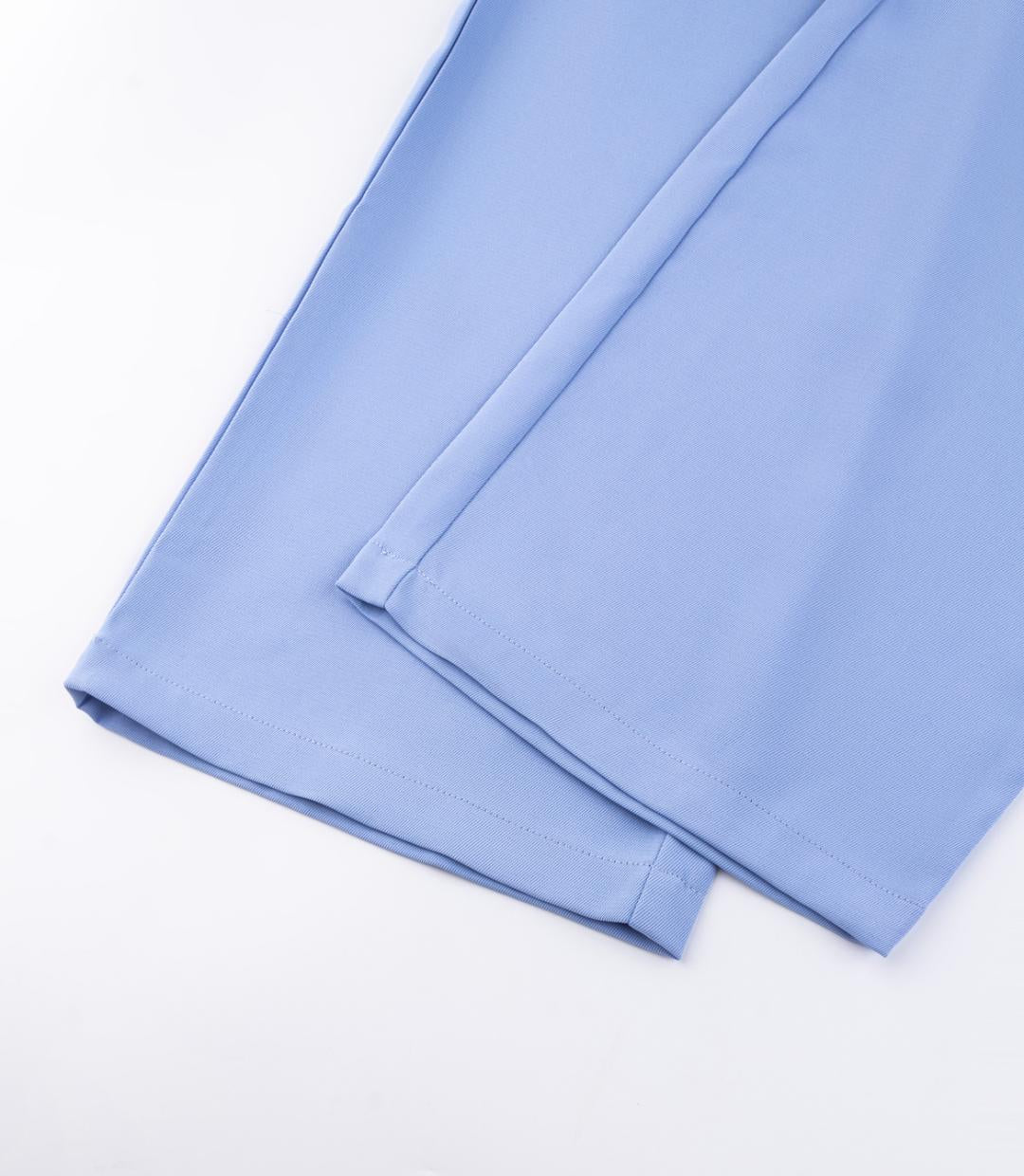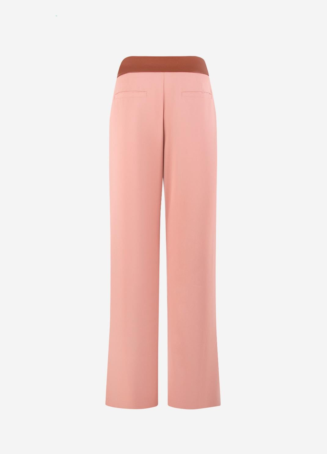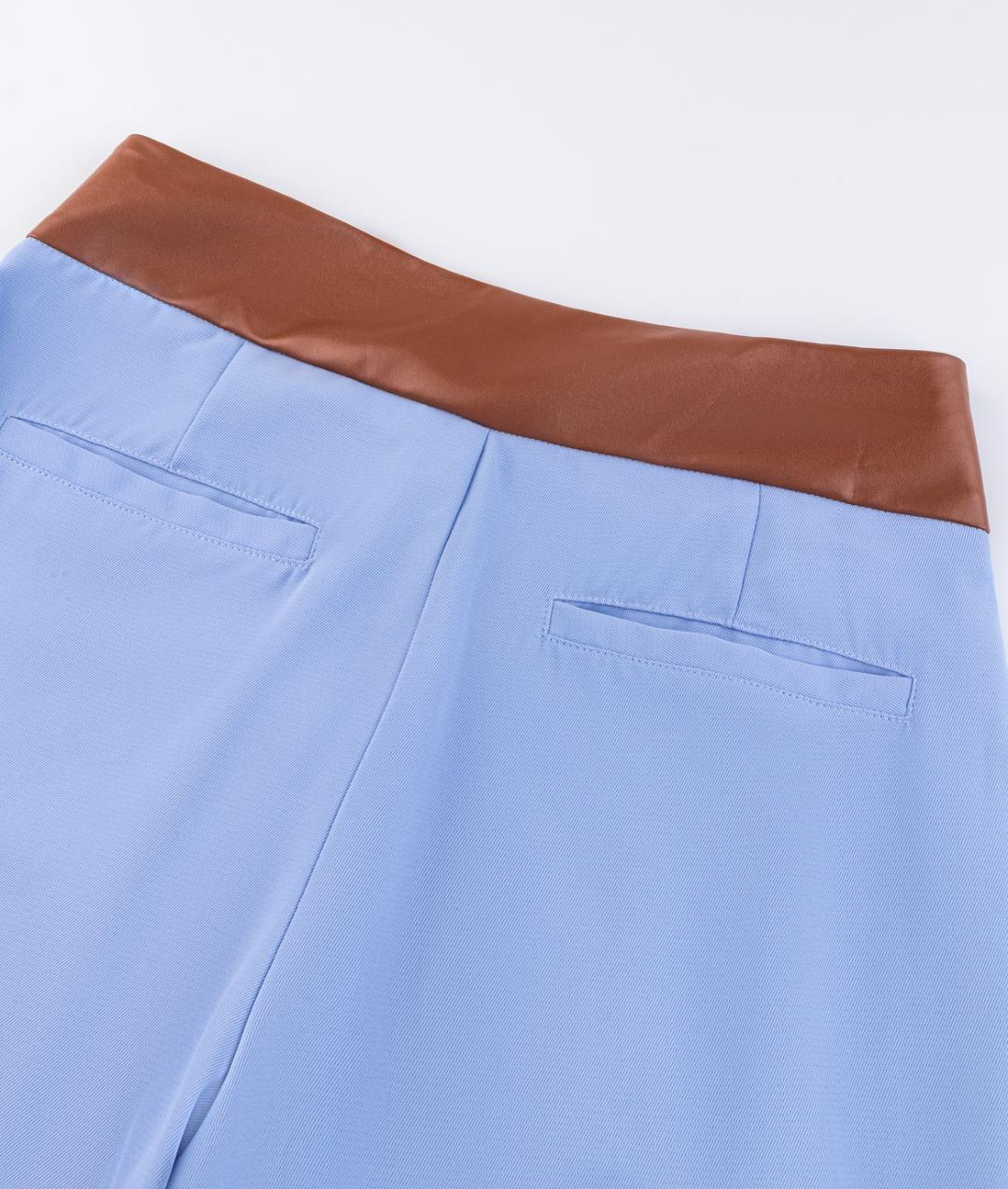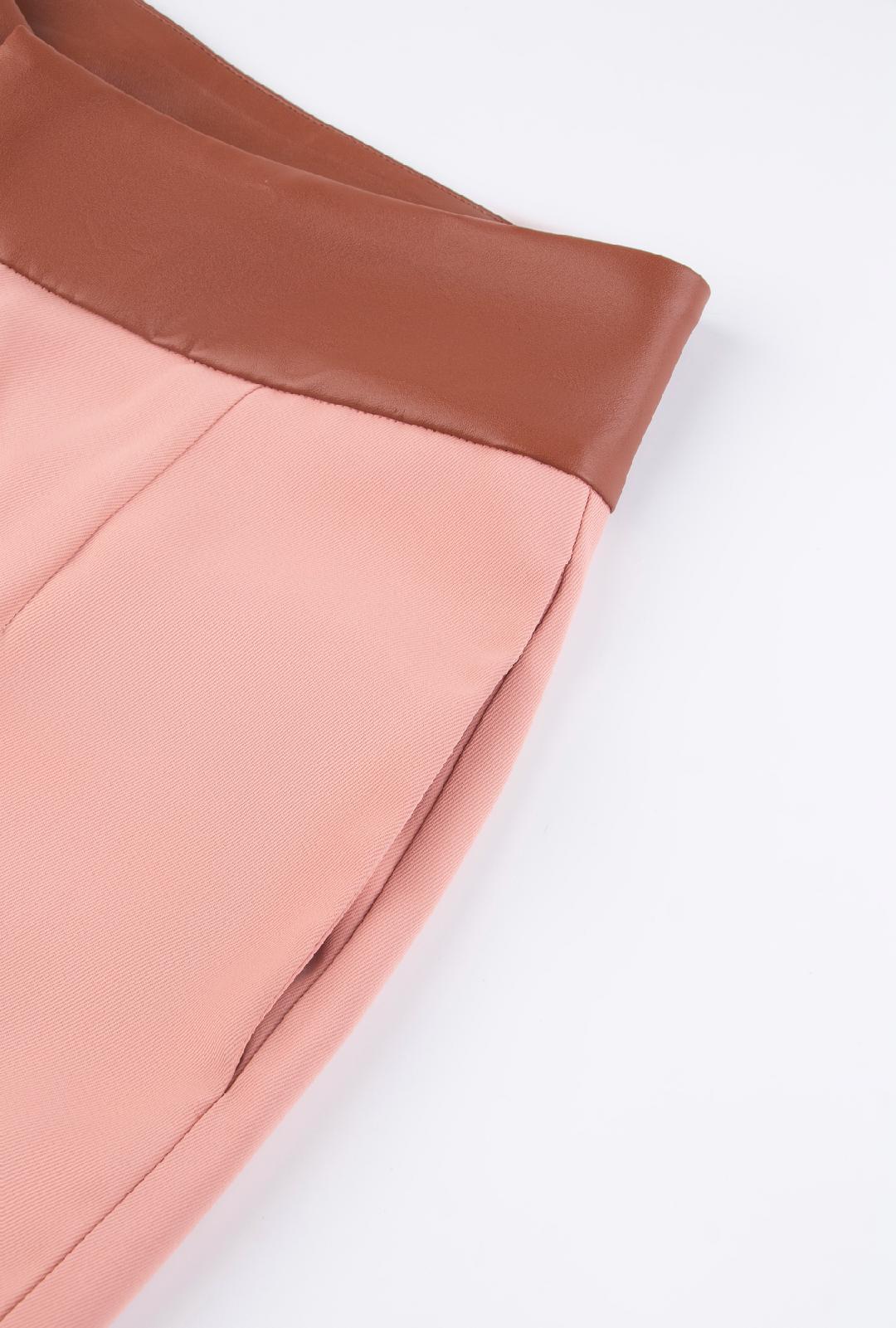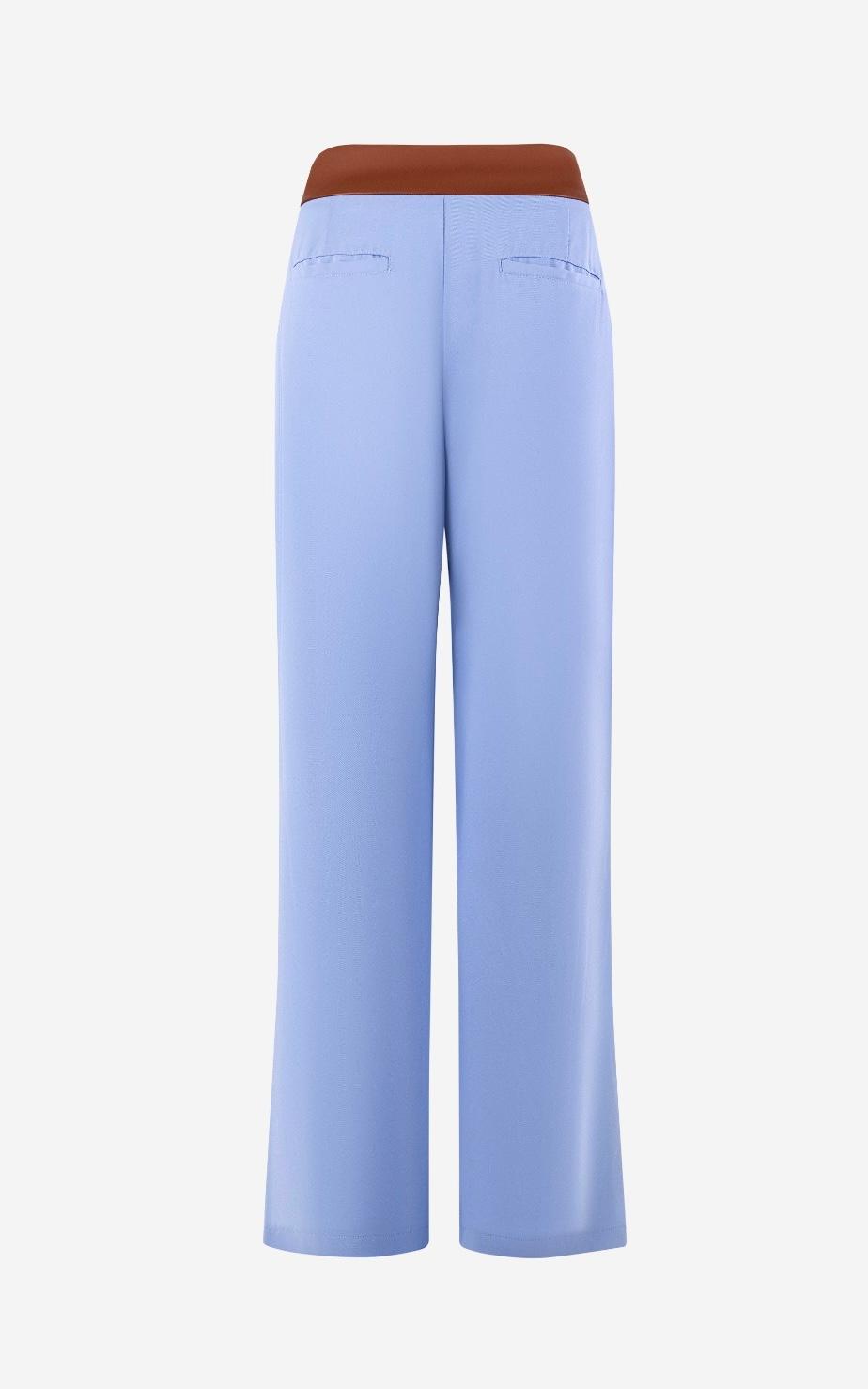 Wide-leg patchwork pants with leather belt. Light fluid fabric